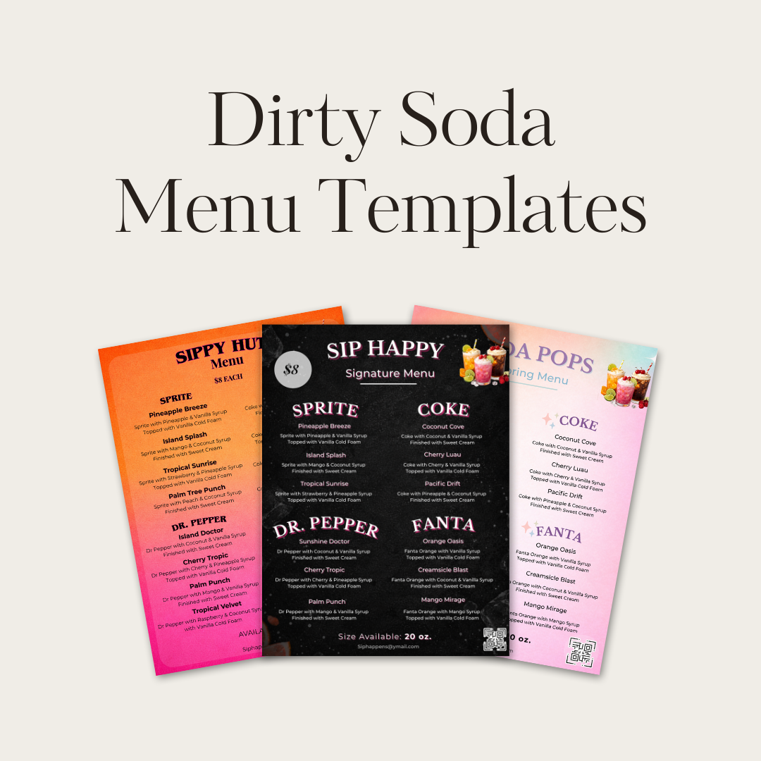 Simple menus, pricing tools, and checklists to help you start your dirty soda business with confidence.